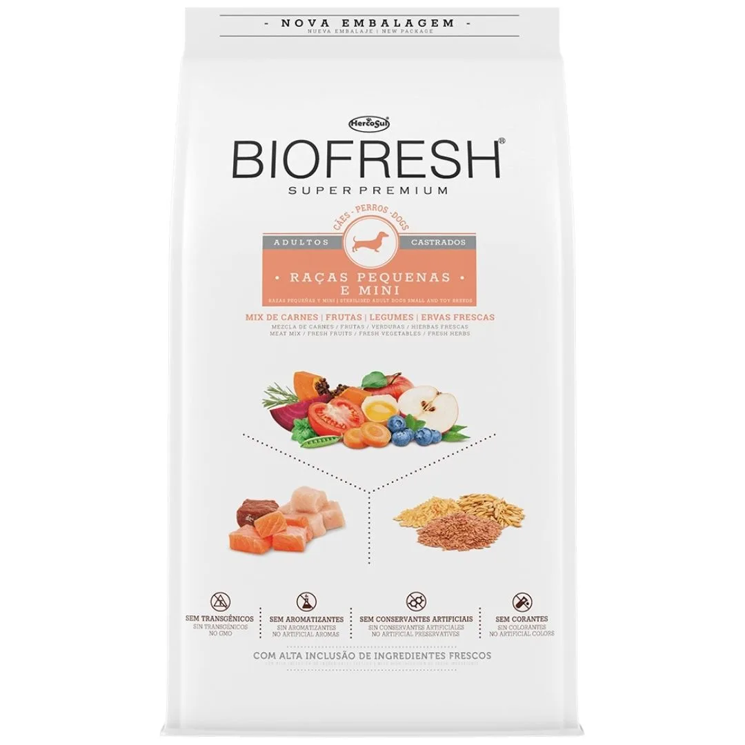 Biofresh Perro Castrado Raza Pequeña 3 kg es un alimento para perros castrados de razas pequeñas, diseñado para ayudar a controlar el peso y mantener una buena salud digestiva y articular. Contiene ingredientes frescos y está formulado para perros castrados, ayudando a controlar el hambre y mantener un peso corporal ideal, algo importante después de la castración.