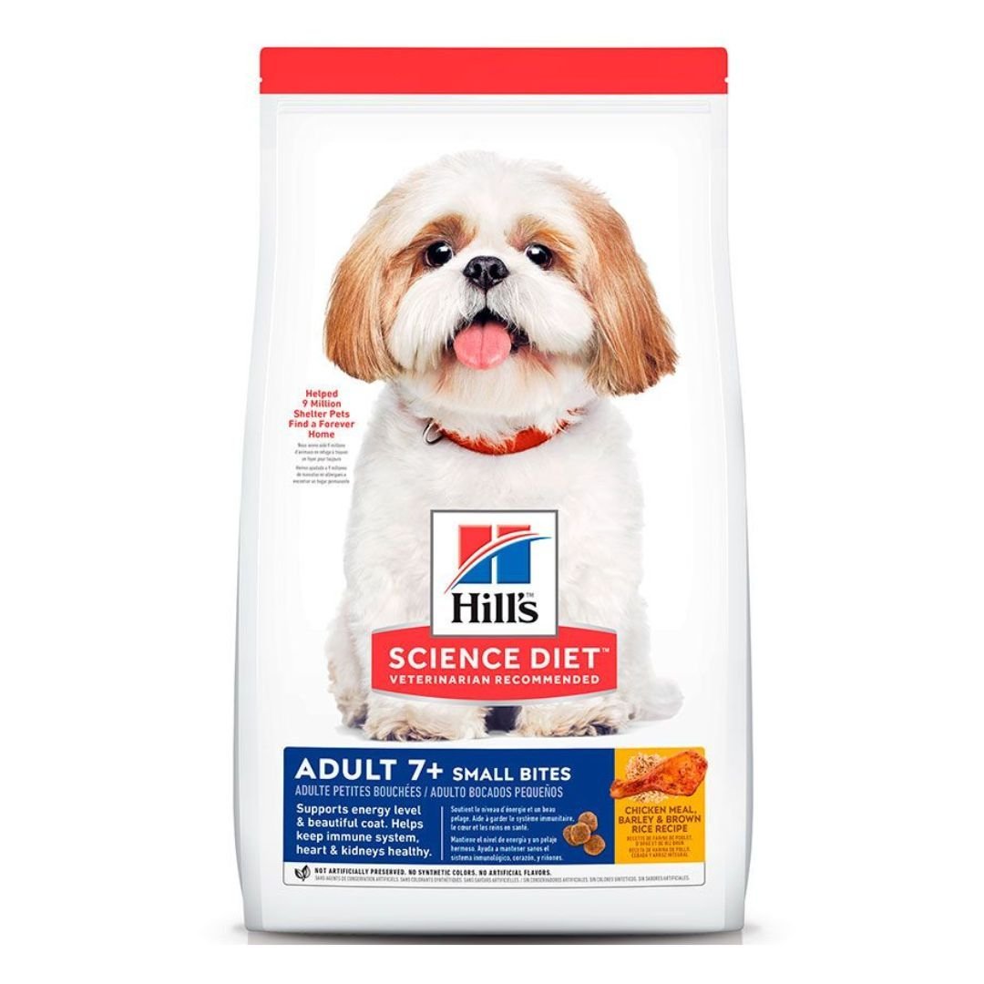 El alimento seco para perros Hill’s® Science Diet® Adult 7+ Small Bites está formulado para necesidades específicas del envejecimiento. Proporciona nutrición fácil de digerir con una mezcla sinérgica de ingredientes para ayudar a favorecer el nivel de energía y actividad. Delicioso sabor pollo en un bocado de tamaño pequeño para aquellos que prefieren la variedad.