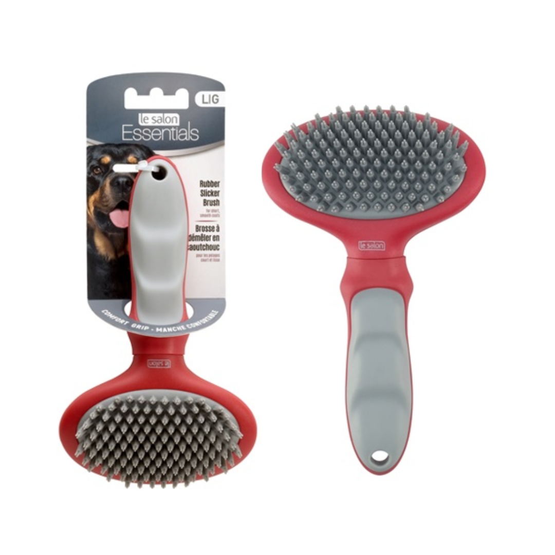 El CEPILLO CERDAS DE GOMA LE SALON está recomendado para perros de pelo corto y/o liso. Este cepillo con cerdas de goma y doble acción permite un cepillado suave mientras masajea a tu mascota. Elimina el pelo muerto, estimula la circulación y la producción de los aceites naturales del pelaje.